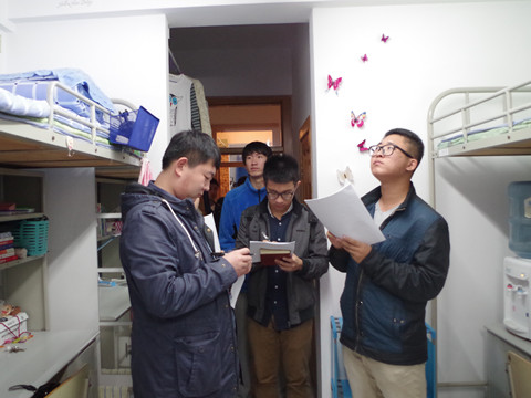 10月19日晚,物理与光电工程学院进行寝室文化节终审。担任终审评委是学生会主席兼团委副书记胡金耀,学生会副主席兼办公室主任兼外联部部长李晓龙,学生会女生部部长王悦和学生会权益生活部部长刘立峥,评委们深入参赛的各个寝室,为其进行评分。2015级辅导员纪丹红老师观摩了本次终审,并对同学们富有创意的寝室装饰给予了肯定。