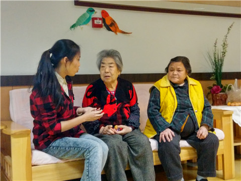 活动前期做了充分的准备,组长邹艳慧组织召开小组会议,安排活动内容、分配任务。4月8日下午,张博带队前往大连西岗区。在有组织的安排下,活动有序进行,同学们有的帮助工作人员清扫敬老院卫生,为老人营造良好的生活环境;有的陪老人聊天,走进他们的内心世界;有的陪老人下棋、打麻将,为他们解闷并带去欢乐;有的负责设计板报,为敬老院增添文艺气息;有的同学像孝敬自己的爷爷奶奶一样为他们削苹果。一时间,忙碌身姿与欢声笑语洋溢在敬老院里。