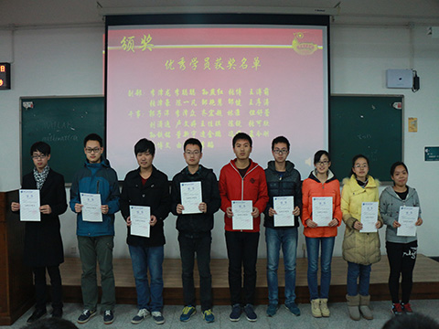 然后便是优秀团学社代表张津豪上台发言,和大家分享了他对这一学期的培训生活的感悟。最后便是颁奖环节了,在全体团学社成员的见证下,有10位副部和14位干事因为他们的杰出表现和优良作风荣获“优秀团员”称号。