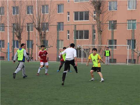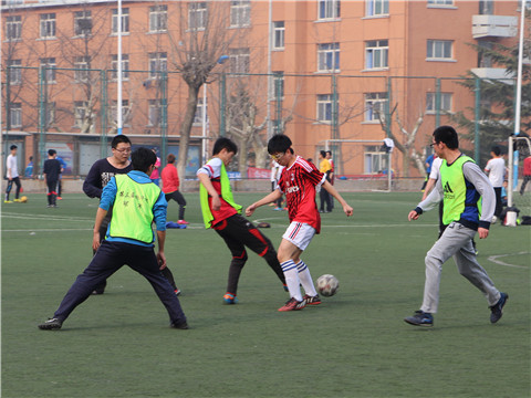 比赛开始之前,球场周围已经站满很多来为球员加油的同学,同时团委书记、2012级辅导员佟西原老师观看比赛。三年级队员和四年级队员在场边,身着队服,积极开始热身运动。