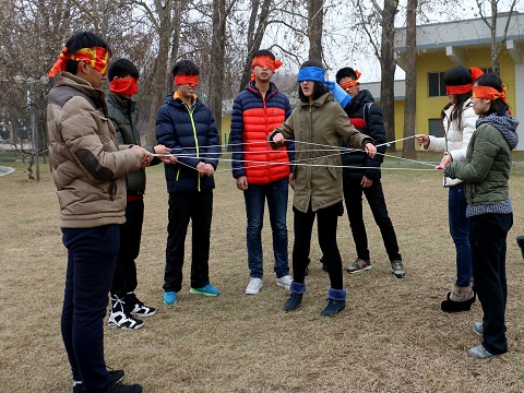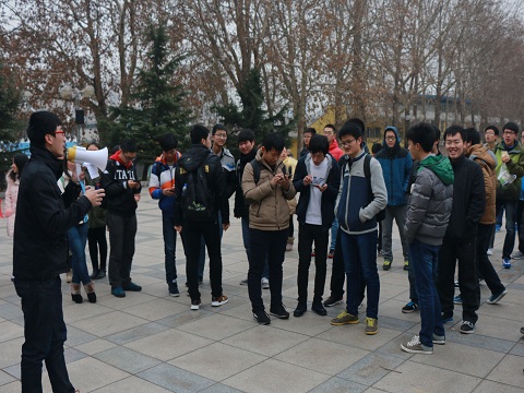 “盲人方阵”是一个很新奇的游戏,在这个游戏中,所有队员被蒙上眼睛,然后用手中的绳拉成一个最大的正方形。这项活动不仅仅提高了队员们之间的合作能力,还加强了队员们之间的沟通与交流。“探秘大工”是此次团训的最后一个活动,在活动开始前,每支队伍会领到各自的第一个任务,在活动中,各队首先根据领到的第一个任务去寻找下一个任务的线索,这样反复循环下去。这个游戏不仅加深了队员对学校的熟悉,还有效地锻炼了队员们的观察力和方位分辨能力。
