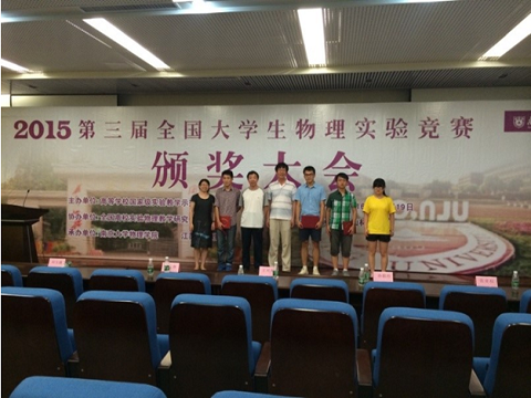 2015年7月16日—7月19日,第三届全国大学生物理实验竞赛在南京大学举行,来自全国50所高校的200多名选手参加了比赛。我校共派出四位同学参加此次比赛,最终二人获综合研究性实验二等奖,一人获基础性实验三等奖。